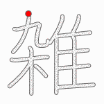 • 雑える  まじえる to mix, to converse with, to cross (swords)(Ichidan verb, vt)